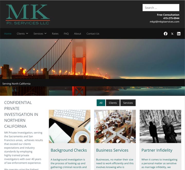 Starting a small business is stressful enough, but introducing your business with a new website doesn't have to be. Our latest site launch is a perfect example of our collaborative approach to web design. Our client, Molley Klier, a 15 year veteran of the SFPD, recently started a Private Investigation business, and we built her website to introduce her to the world. The site uses Molley's descriptions of her business expertise, while we matched up imagery, colors, and modern design to fit her style.